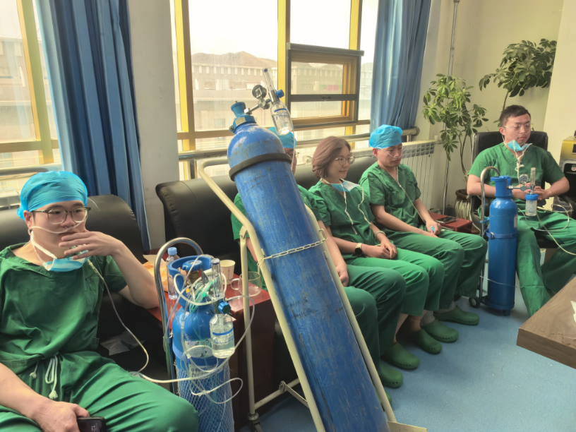 大楼的一侧,来自青岛的骨科专家团队正正在为藏族患者进行手术!
